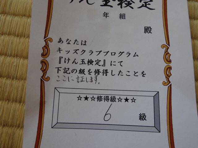 《いぬ》がけん玉検定六級に合格しました。《いぬ2》が買ってくれた競技用のけん玉のおかげでだいぶうまくなりました。