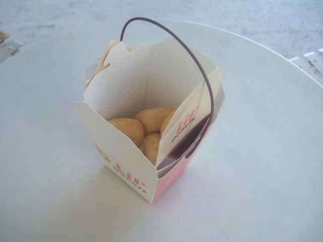 です。揚げたてのミニドーナツで中はふわふわです。とってもおいしくて《とり》が独り占めしようとしてました。