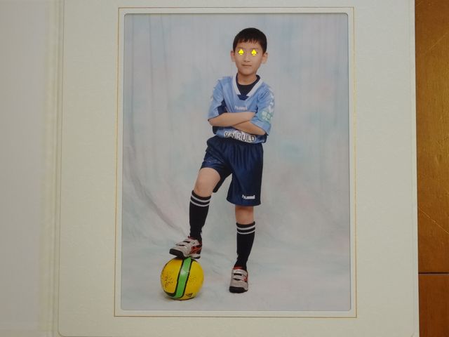 サッカー教室のユニフォームで撮影した写真が出来上がりました。なかなかポーズが決まっています。