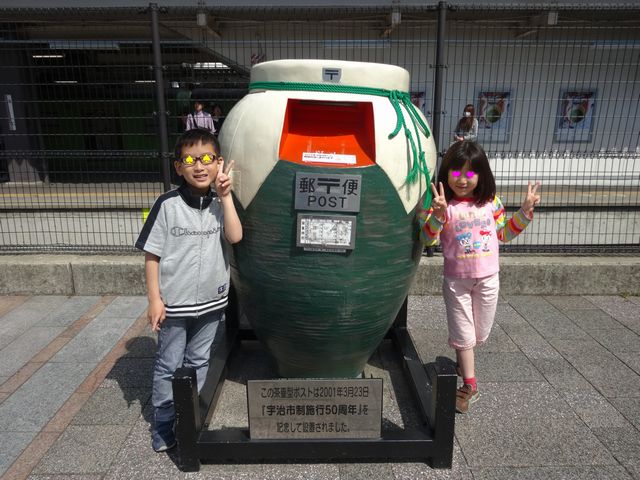 平等院と清水寺 お出かけ 2014.05.04(日) せっかくなので京都にプチ観光に行ってきました。まずは10円玉の表面と1万円札の裏面で有名な鳳凰堂です。JR宇治駅の駅前には、茶壷型ポストがありました。鳳凰堂の見学をしてソフトクリームとわらびもちで休憩です。それから京阪電車に乗って、清水寺に行きました。ものすごい混雑で歩くのも大変でした。清水の舞台から飛び降りるということわざの意味を教えておきました。八坂神社を通って河原町に出て、阪急電車で梅田まで行って、お土産を買って帰りました。