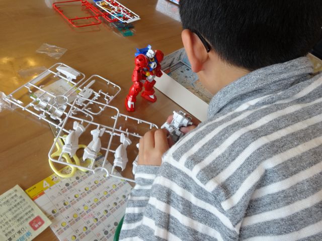 《たつ》の実家でもらったガンダムのプラモを早速組み立てました。《とり》には余裕のようです。