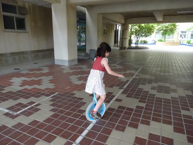 《いぬ》が一輪車を見に来てほしいと言うので行ってきました。上手に乗れますが止まれないようです。《とり》は音楽隊の衣装合わせをしました。ジャストサイズです。