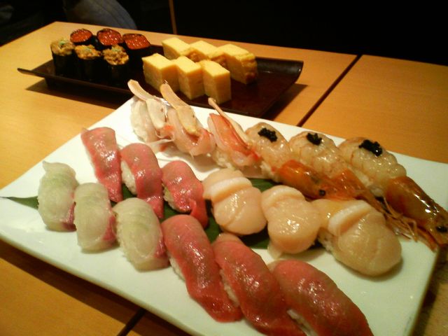 ラン・ラン・ランチ お食事 2009.01.28(水) 普段は《へび》にお弁当を作ってもらっているのですが、今日は《へび》の体調が悪くてお弁当がありませんでした。そこで会社の後輩においしいお店を探してもらったところ、常に行列ができるお寿司屋さんが近所にあったので行ってきました。行ったのは美登利寿司 銀座店です。30分ほど並びましたが、とてもおいしかったです。ちなみに3人で行ったので左側の写真は3人前です。
