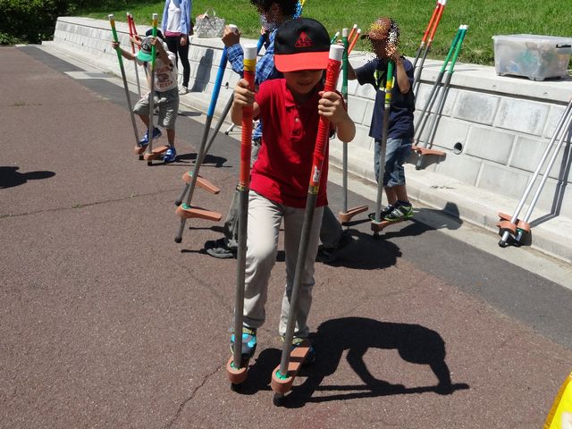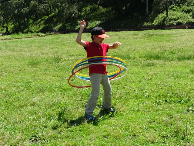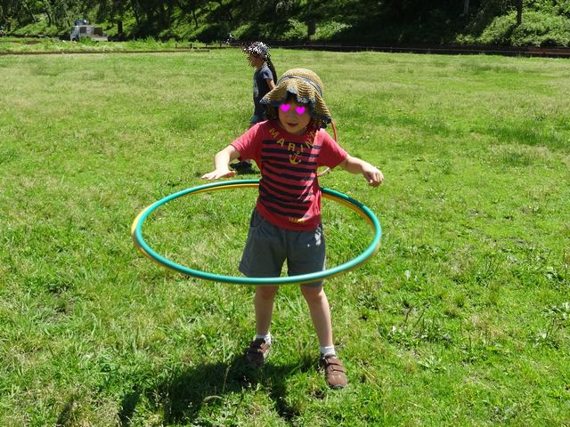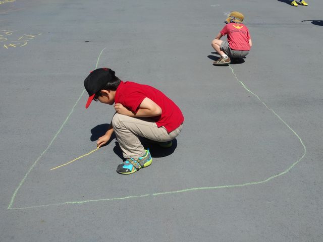 こどもの国に行きました。まずはチョークで落書きをしたり、竹馬に乗ったり、フラフープをしたりして遊びました。落書きコーナーでは《とり》が大きな日本地図を描いていました。フラフープは一度にたくさんのフラフープを回せるか競い合っていました。2つまでだとうまく回せるようです。