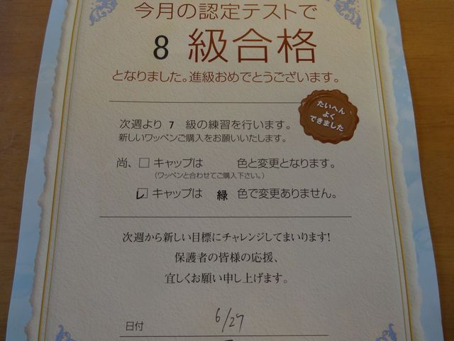 進級試験 習い事 2014.06.27(金) スイミングの進級試験です。《いぬ》は平泳ぎの足に合格して次は手と足の練習です。《とり》は個人メドレーのタイムが7秒も上がり誉められたそうです。その間、《へび》は先輩ママさんたちとお茶をして、山口県の瓦そばをお土産でもらったそうです。
