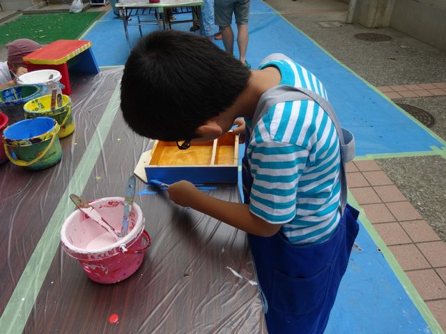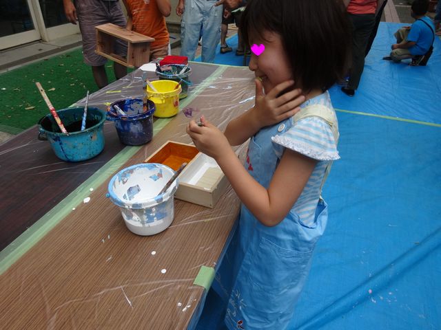 工作教室 子育て 2014.08.22(金) 工作教室に行きました。大工さんも手伝って下さり立派な作品が仕上がりました。釘がまがったりしたら大工さんが打ち直してくれたりカンナをかけてくれたり、プロの技はすばらしかったです。