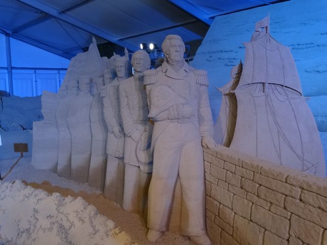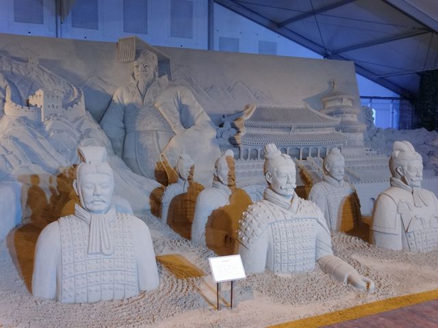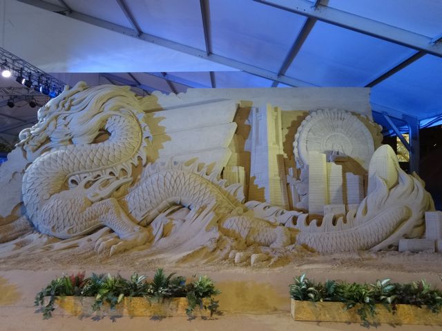 ヨコハマ砂の彫刻展は、夜ということもあり空いていました。どの彫刻もじっくり見ることができます。写真では伝わりにくいですが、どれも精巧に出来ています。鳥取の砂の美術館にも行ってみたくなりました。