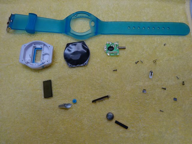 《とり》が壊れてしまった時計をバラバラにしました。もう一度組み立てることはできないそうです。
