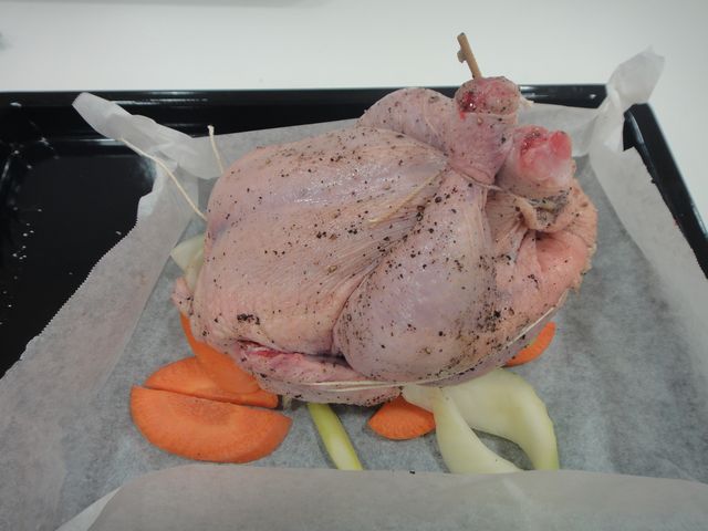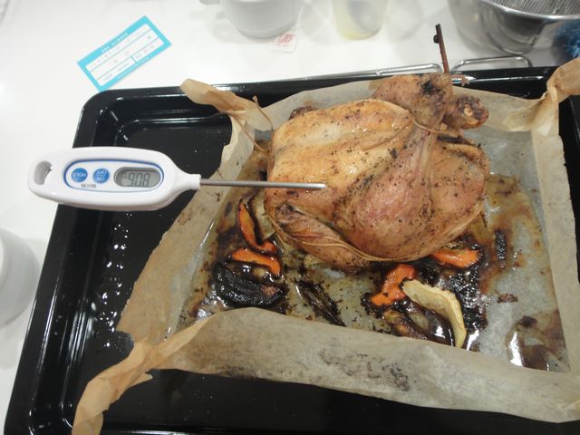 ローストチキン 食べ物 2010.12.18(土) 《へび》がお料理教室でローストチキンを作ってきてくれました。鳥の中には、ポルチーニ茸のおこわを詰めて焼きます。20分に1回油を回しかけて1時間で完成です。皮はパリッとして身はジューシー、中身のおこわもおいしかったです。《とり》も《いぬ》もとても喜んでいました。復習を兼ねてクリスマスに作って欲しいです。