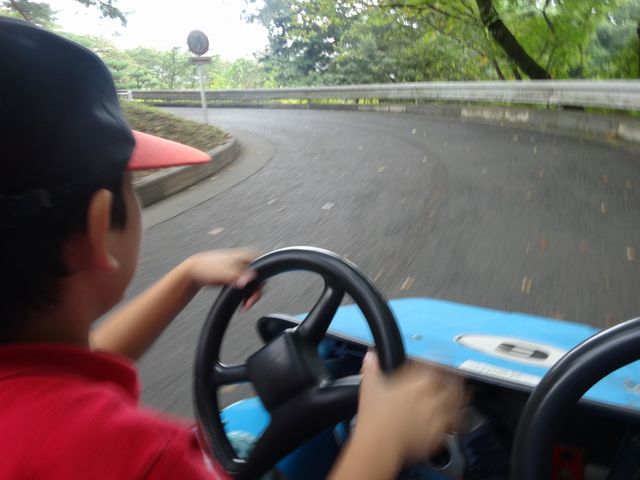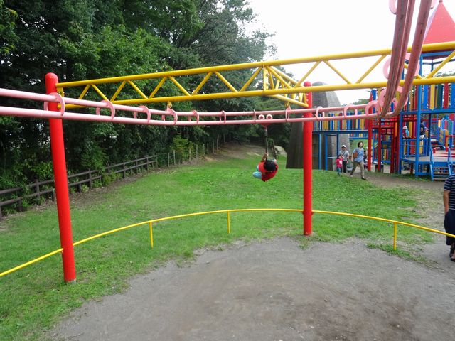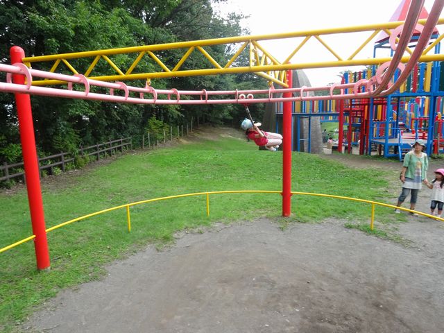お昼ごはんを食べてからは歩いて八幡山公園に行きました。長い橋を渡っていると、栗が実っているのが見えました。公園ではゴーカートに乗ったり、ターザンロープで遊んだりしました。ゴーカートは本格的なコースで《とり》も《いぬ》も楽しそうでした。ターザンロープはぐるっと一周するタイプで、勢いをつけて回ると体が横になるぐらい揺れてスリル満点です。《とり》と《いぬ》は飽きるまで楽しんでいましたが、毎回、ロープに捕まるのを手伝っていた《たつ》はヘトヘトになりました。