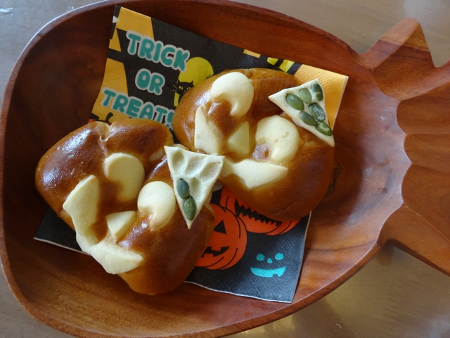 ハロウィンのかわいいパンが売っていたのでおやつに買ってかえりました。
