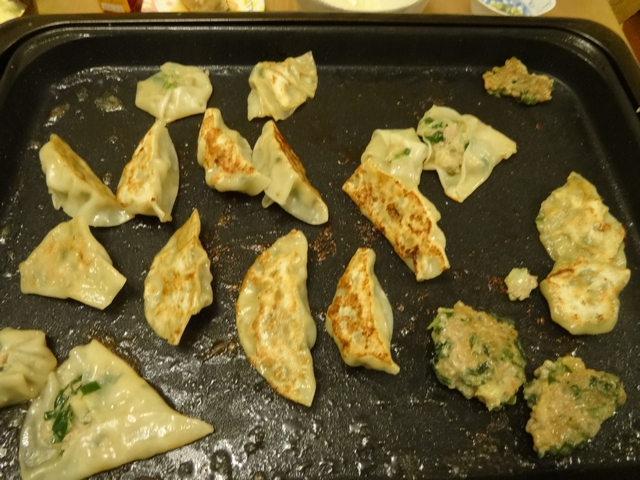 連休最後の夜ご飯は餃子です。《とり》と《いぬ》が包んでくれて、二人とも自分の包んだものを探して食べていました。