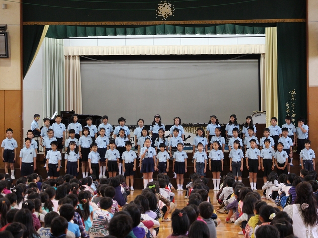 市内の音楽発表会でした。選抜メンバーしかでれず、ホールで観れる保護者の数も全員分ではなくて、なかなかきびしいです。朝の全校発表を観に行き、お友達とフレンチを食べてからホールに観に行きました。《とり》の学校は断トツで上手く、子供が伴奏をしているのも《とり》の学校だけでした。ヤマハのコンサート用のピアノは音もきれいでした。二曲歌いましたが二曲とも《とり》が伴奏をしました。二年生の頃からいつも伴奏をしているので緊張しないそうです。この日は朝から発表、2、3時間目も音楽で四時間目に給食を食べて出発したそうです。毎日朝練を頑張り、休み時間は音程がうまく取れないお友達のために音楽室で一緒に練習をしたり、よくがんばったと思います。写真は朝の全校発表の時のものです。