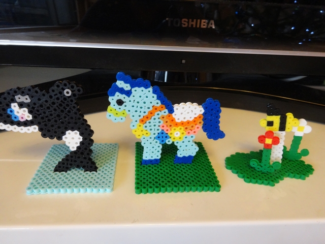 《いぬ》がアイロンビーズでいろいろ作っていました。なかなかよく出来ています。