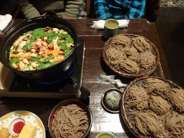 夜ご飯は「月の蕎麦」に行きました。とうじ蕎麦、山賊焼定食、お子様セットです。とうじ蕎麦を食べて体が温まりました。お土産は信州限定のお菓子と野沢菜です。