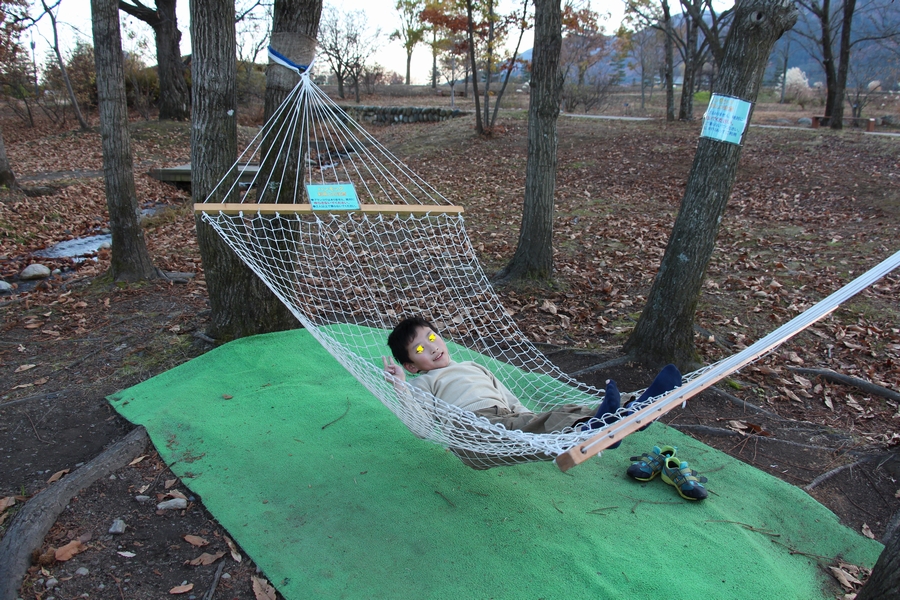 お昼ごはんの後は、国営アルプスあづみの公園へ行きました。まずはワークショップでクリスマスカードやカレンダーなどを作りました。外遊びでは、サイバーホイール、大玉、ハンモック、マシュマロドームで遊びました。《とり》も《いぬ》も汗をかいていました。ミニコンサートを聞いて暗くなってからはイルミネーションを見ました。