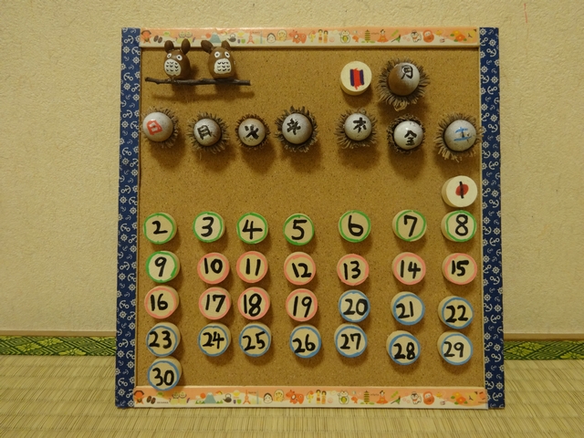 《とり》が国営アルプスあづみの公園で作った万年カレンダーです。リビングのカレンダーとして使うことにしました。