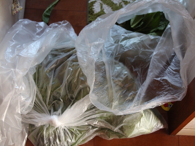 長野のリンゴ狩りの際に採ってきた野沢菜です。炒めたり漬けたりすると嵩が減るので、今年は2袋採ってきました。野沢菜をたくさん作って食べました。