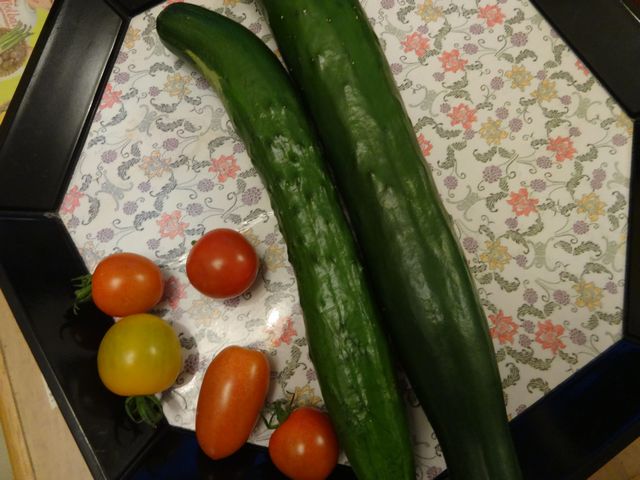 ピアノの先生からもぎたてのきゅうり、トマトをいただきました。みずみずしくてとてもおいしかったです。
