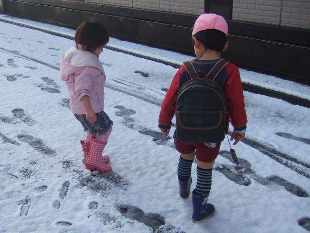 2年ぶりの積雪です。朝起きると家の周りも真っ白になっていました。幼稚園が終わってから雪だるまを作って遊びました。《とり》も《いぬ》も、とても楽しそうでした。