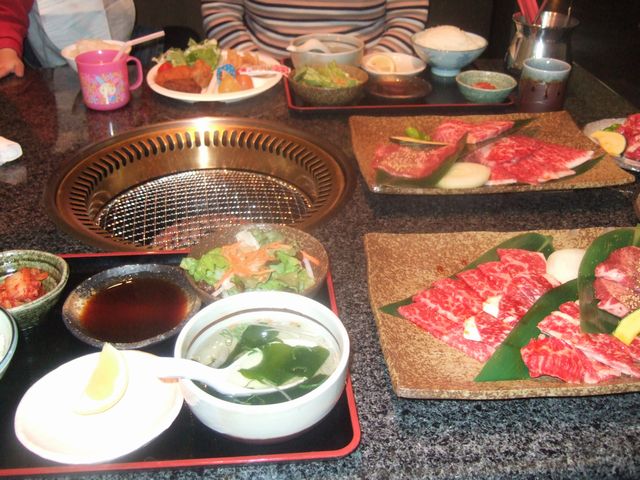 焼き肉ランチ お食事 2009.02.03(火) 《へび》の希望でランチに焼肉を食べに行きました。《とり》は幼稚園に行っているので3人です。ランチですが、せっかくの機会なのでお肉はカルビ・ロース・ランプ・タン・中落ちカルビ・大判ハラミと豪勢に注文しました。味はまあ普通といったレベルでした。《いぬ》はお子さまランチを食べて満足そうでしたが。。。 お口直しに買ったスターバックスの抹茶クリームフラペチーノです。たまに飲むとおいしいですね。《いぬ》も必死に吸ってました。