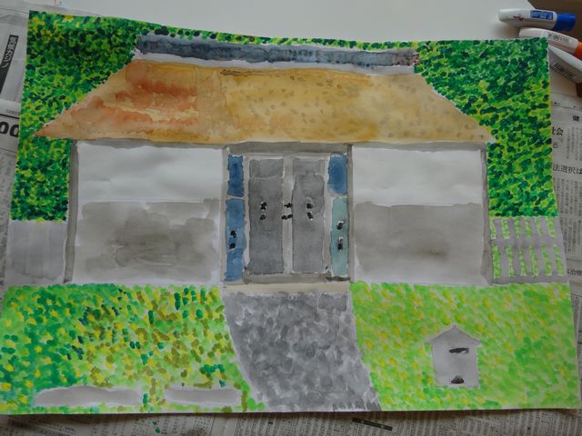 《とり》が宿題で絵を描いていました。けっこう時間が掛かる宿題です。