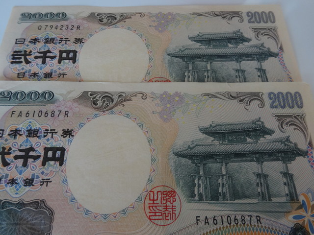 2000円札は、ほとんど見なくなりましたね。