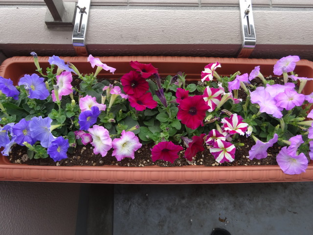 パンジーが枯れたので新しくペニチュアを植えました。《いぬ》がお世話をしてくれています。