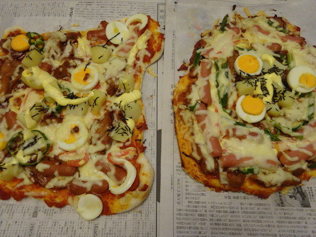 夜ごはんは手作りピザです。今回も《とり》と《いぬ》が具だくさんのピザを作ってくれました。