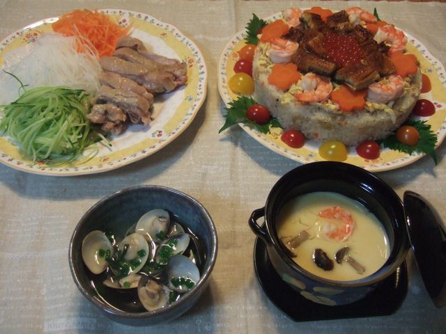 ひな祭り 子育て 2010.03.03(水) 今年のひな祭りメニューです。うなぎ、ハマグリはスーパーだと中国産が多いのでデパートで国産のものを買いました。《とり》も《いぬ》もたくさんおかわりしていました。どれもおいしかったです。 幼稚園から帰ってきてからは同じバス停のお友達のお家の横で遊ばせてもらいました。バス停では年中さんは《とり》だけなのでいつもは年少さんと遊んでいますが、今日は年長さんのお兄ちゃん二人が遊んでくれました。魚釣りごっこで盛り上がっていました。