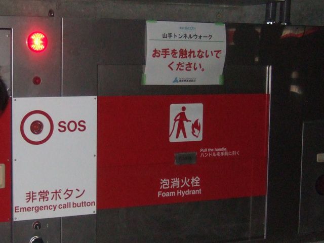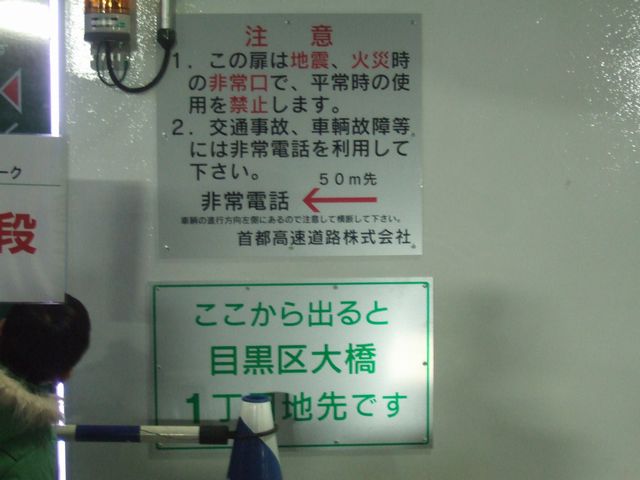 開通前の高速道路内を歩くイベントでトンネルの出口部分からは首都高が見えていました。普段は間近で見る機会のない消火栓や非常口などを見学しました。