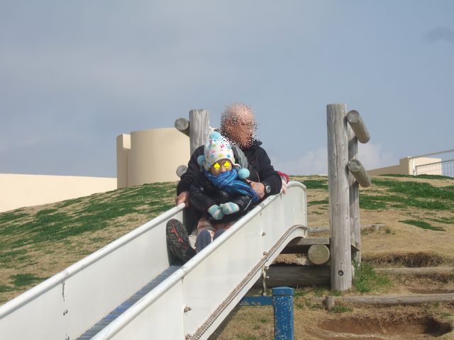 まずは「道の駅 ちくら・潮風王国」へ行きました。風がとても強かったのですが、じぃじとばぁばと《へび》が買い物に夢中になっている間、《とり》と《いぬ》は滑り台やブランコで遊んでいました。買い物が終わってからは一緒に滑り台を滑って遊びました。