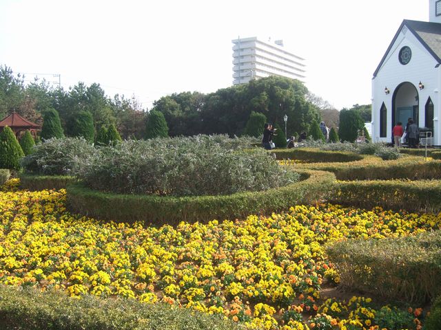 夜ごはんに向かう途中に「道の駅 ローズマリー公園」に行きました。ローズマリー公園は左右対称に幾何学模様のあるヨーロッパ式の庭園です。《とり》と《いぬ》は庭園を眺めるというよりは庭園内を走り回って楽しんでいました。