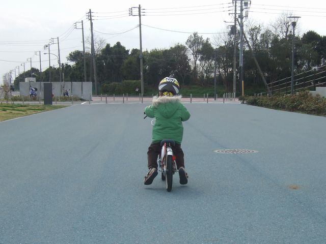 公園で《とり》の補助なし自転車の練習をしてきました。まずは、先週に引き続いてペダルを外してバランスを取る練習から始めました。しばらく練習していると、ゆるい下り坂で5mぐらい足を地面に着けずに進めるようになりました。次はいよいよペダルを着けて漕ぐ練習です。既にバランスは取れるようになっていたので、最初に少し支えてあげると、あとは一人で漕いでいました。《とり》も思わず「やったー!漕げた!」と言っていました。最後に止まっている状態から一人で漕ぎ始める練習をしましたが、うまくできる時もあれば、なかなかできない時もあり、もう少し練習が必要そうです。