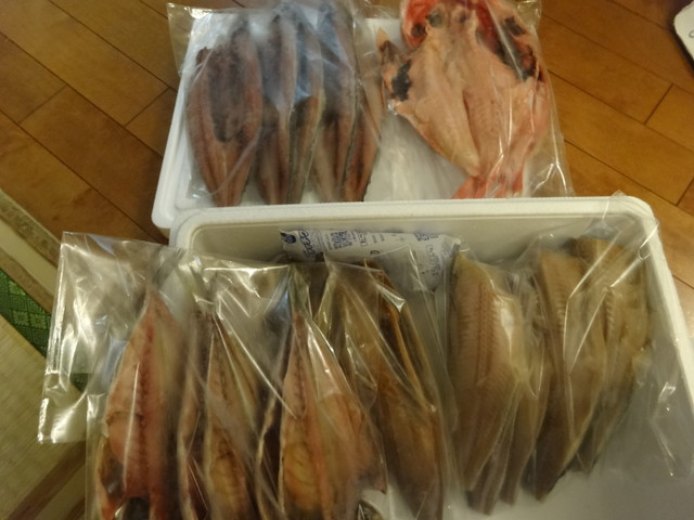 ふるさと納税のお礼の干物が届きました。おいしそうです。