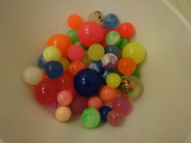 イベントで《いぬ》がもらってきた大量のスーパーボールです。お風呂に入るときに、これで遊んでいるようです。