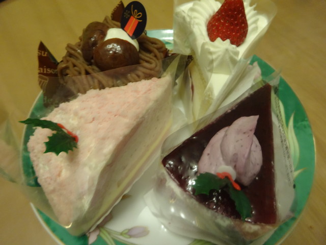 家電量販店の景品でケーキ二個分の無料券をもらいました。追加で二個購入して、4人で1つずつ食べました。