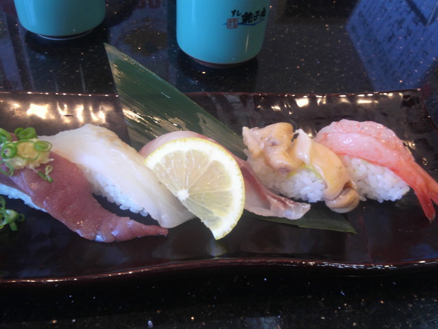 《たつ》が飲み会なので、みんなで夜はお寿司を食べに行きました。金目鯛をその場でさばいて、握ってくれました。どれも美味しかったです。
