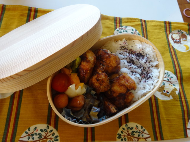 お弁当 会社 2015.07.30(木) ランチミーティングのために夏休みに秋田県で購入した大館曲げわっぱでお弁当を作ってもらいました。《とり》のお弁当箱ですが、遠足でしか使わないので時々借りようと思います。