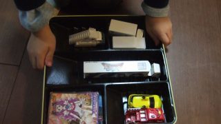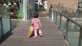 お友達と一緒に《へび》と《いぬ》が自由が丘に買い物に行ってました。《いぬ》は買い物袋を持って電車を眺めながらご機嫌です。