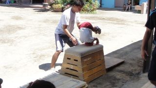 今日はスイミングです。お休みの子が多くて、《いぬ》のチームは3人だけでした。3人だけなので、すぐに順番が回ってきて結構疲れていました。