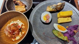 本日の行程はこちらです。今日も一部ログが漏れてます。水色はアメリカンビレッジで乗ったクルーズです。朝ご飯は洋食のビュッフェです。朝の散歩では潮が引いていて、きれいでした。まずは万座毛を観光です。景色はきれいでしたが、風が強くて歩くのが大変で...