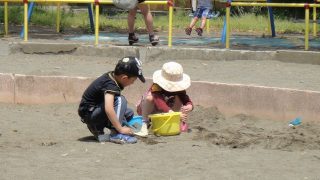 子育て 公園 《たつ》が車の修理に行っていたので、《へび》が《とり》と《いぬ》を連れて近くの公園に行ってきました。砂場で川を作って遊んでいましたが、水汲み係りの《いぬ》がバケツを持ったまま、途中で油を売るので何度も《とり》に怒られていました。 2012.05.20(日) 2 子育て