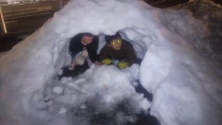 1 習い事 サッカー 先週のサッカー教室は降雪で中止になったので、今年初めてのサッカー教室がありました。グランドの近くには先週降った雪で作った「かまくら」がありました。《とり》も《いぬ》も中に入って楽しんでいました。 2013.01.21(月) 2 習い事
