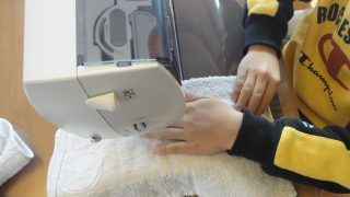 2 小学校 雑巾 明日から学校が始まりますが、雑巾を持っていく必要があるので、《とり》が《へび》と一緒に作りました。まだまだ真っ直ぐには縫えませんが、雑巾が無事に完成しました。 2013.01.06(日) 2 小学校