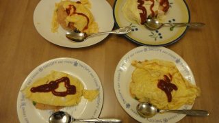 子育て 料理 《とり》が夜ご飯のオムライスと食後のデザートのプリンを作ってくれました。オムライスは初めてにしてはよくできています。どちらもおいしくできていました。 2013.05.11(土) 2 子育て