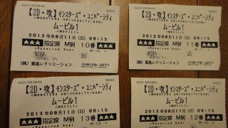 その他 映画 映画を見に行ってきました。《とり》の希望で、モンスターズ・ユニバーシティです。朝9:15からの回なので、そんなに混んでおらず、真ん中の見やすい席から見ることができました。映画もおもしろかったです。 2013.08.11(日) 2 その他
