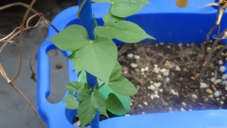 《いぬ》がいつのまにかアサガオの種を植えていました。涼しくなってきましたが、このまま育って花が咲くのでしょうか。。。