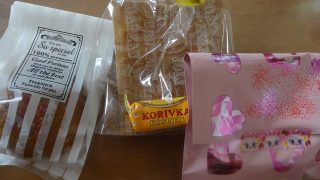 《いぬ》がお友達から手作りの友チョコをもらっていました。もらってすぐに食べていました。