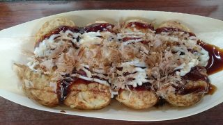 お昼ご飯に梅田で食べたたこ焼きです。大阪のたこ焼きはやっぱりおいしいです。